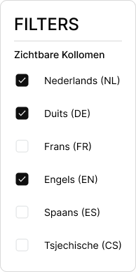 Tijdens het uitwerken van de user story's en het uitwerken van de schermontwerpen is besloten om de mogelijkheid te geven om de vertalingen te filteren op taal. De vertalingen worden getoond in een lijst/tabel, en om het makkelijker te maken voor de gebruiker om het overzicht te behouden is het handig om kolommen van talen te kunnen filteren. Dit zorgt ervoor dat de gebruiker snel de vertalingen kan vinden die hij/zij zoekt.