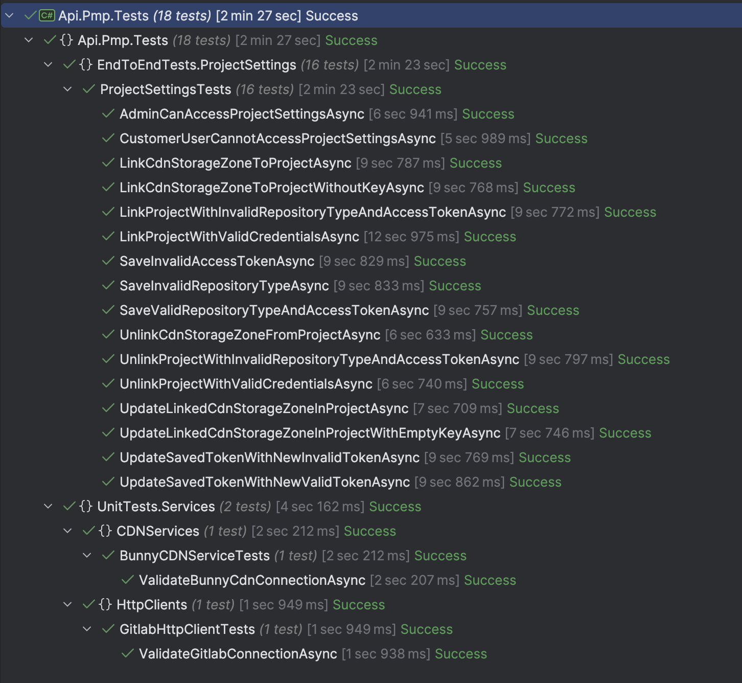Er is één unit test geschreven om de verbinding met GitLab te valideren. Dit is gedaan, omdat GitLab een grote afhankelijkheid is voor dit onderdeel van de applicatie. Doordat deze test bestaat is sneller te achterhalen of het probleem bij GitLab of bij ons ligt. De test valideert of de verbinding met GitLab werkt, en of de projecten opgehaald kunnen worden. Als deze test faalt, is het duidelijk dat de verbinding met GitLab niet werkt, en kan er direct actie ondernomen worden.
