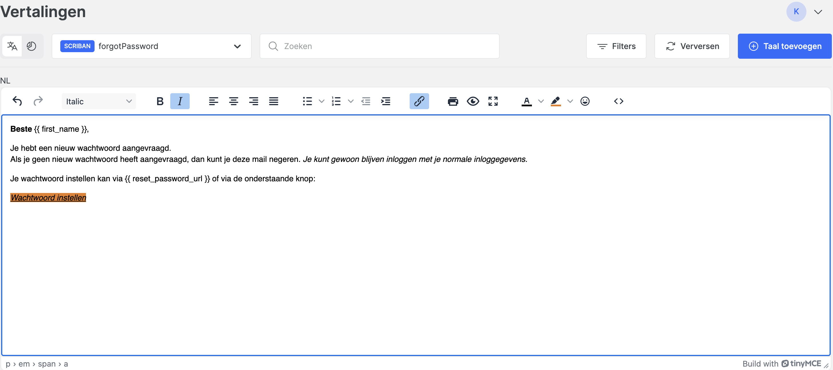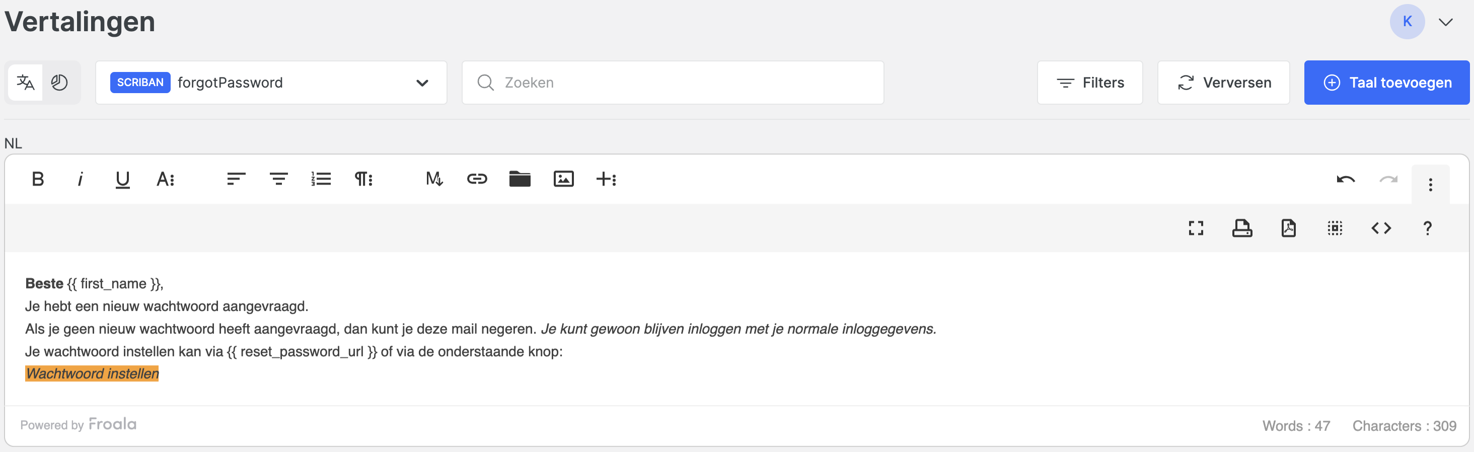 Het is belangrijk om een goede WYSIWYG editor te kiezen die de HTML opmaak van de Scriban bestanden ondersteunt. De gebruikers van de applicatie moeten de vertalingsbestanden kunnen beheren zonder kennis nodig te hebben van HTML. Het is verder ook belangrijk dat ontwikkelaars die wel kennis hebben van HTML eventuele fouten in de HTML opmaak kunnen herkennen en corrigeren.